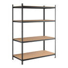 For a safe, durable storage solution, rely on this Lavex Pro shelving unit! This unit comes with (5) 30" x 60" x 3/8" heavy-duty particle board shelves and (4) 84" heavy-duty 1-piece uprights, which provide a strong, reliable framework to safely store and access industrial materials. It includes heavy-duty double rivet beam support for rigid assembly and exceptional strength. The uprights are made of powder-coated 18 gauge steel while the beams are constructed of powder-coated 16 gauge steel for added durability. Each shelf has an impressive 1,200 lb. load capacity, so you can confidently store heavy or oversized items. Since the shelves are solid, they allow for efficient loading and unloading and can easily accommodate items that might fall through regular vented or wire shelving.
