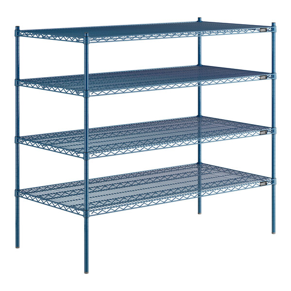 Lavex Pro 30" x 60" NSF Blue Epoxy Heavy-Duty 4-Shelf Kit with 54" Posts and Antimicrobial Coating