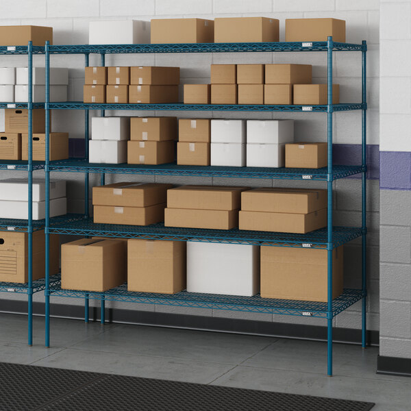 Designed for use in moist or damp environments, this shelving unit is an excellent choice for organizing and maximizing storage space. Whether you're looking to streamline your warehouse operations or simply need additional storage in your industrial facility, this heavy-duty shelving kit is the perfect solution. Mix and match with Lavex Pro accessories (sold separately) to personalize your kit! Invest in the Lavex Pro blue epoxy heavy-duty 5-shelf kit and experience the durability and functionality it brings to your workspace.