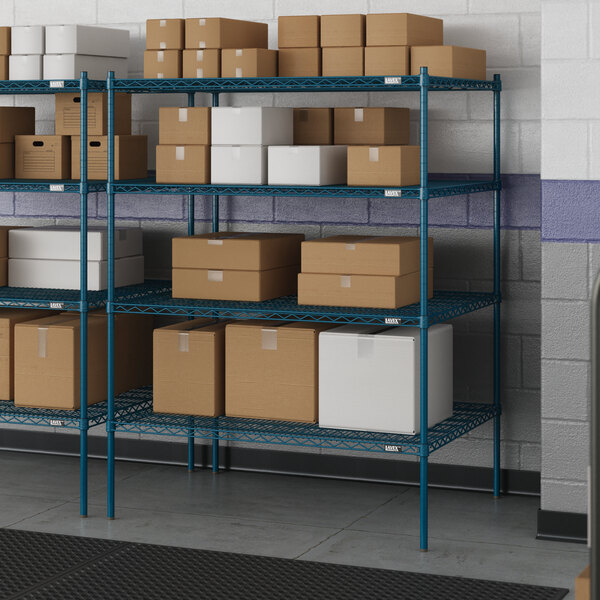 Upgrade your storage capabilities with the Lavex Pro blue epoxy heavy-duty 4-shelf kit!
