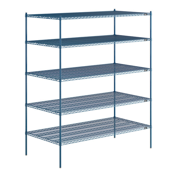 Lavex Pro 36" x 72" NSF Blue Epoxy Heavy-Duty 5-Shelf Kit with 86" Posts and Antimicrobial Coating