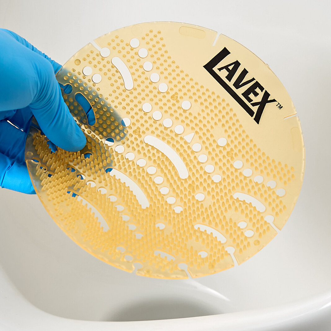 Each Lavex urinal screen provides up to 30 days of continuous fragrance, making it a cost-effective and long-lasting solution for commercial restrooms. For added convenience, it protects drains from debris such as chewing gum and trash, preventing costly clogs and overflow issues that can disrupt your operations. Keep your restroom smelling fresh and welcoming with this Lavex urinal screen.