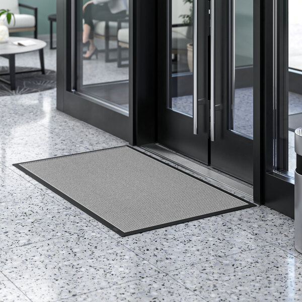 It features a rubber backing and borders to reduce movement of the mat, preventing water and grime from escaping as the mat is continually walked on. Plus, its waffle pattern with rubber reinforcement allows for a tough scraping surface.