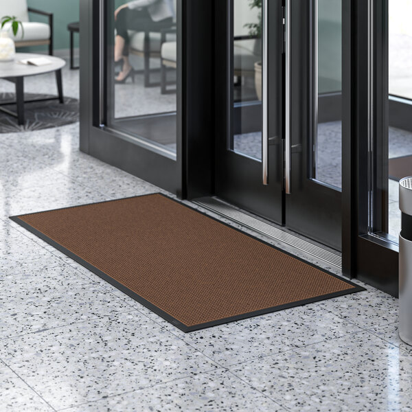 This mat is made with a brown polypropylene carpet material that resists fading, provides excellent moisture retention, and dries quickly. This mat's raised molded construction works to trap water and unsightly dirt below shoe levels, keeping it away from indoor floors.