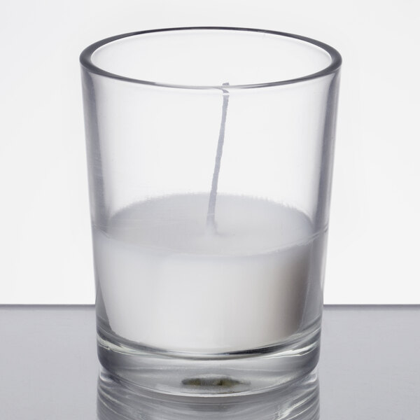 Thanks to the unscented design, this glass wax filled votive eliminates odors without creating any additional scents, allowing guests to appreciate the soft lighting without any bothersome aromas. Additionally, its glass exterior prevents messes by catching and holding melted wax as the wick burns down. It lends the elegant look of traditional tea lights and votives without the clean up or hassle of finding a separate, compatible candle holder.