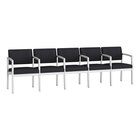 Enhance the comfort and style of your waiting room with this Lesro Lenox Steel sofa. This sofa is designed with a robust steel frame, making it perfect for high-traffic areas such as waiting rooms and reception areas. The durable silver powder-coated finish ensures that it will withstand daily use and maintain its sleek appearance for years to come. Not only is it built to last, but it is also stain- and water-resistant, formaldehyde-free, and contains no heavy metals, antimicrobials, or flame retardants. The seats and backs feature a fiber content and backing of 35% cotton and 65% polyester for optimal comfort. Its grade 3 100% vinyl upholstery with a urethane topcoat adds a touch of elegance and sophistication to any space while its black color easily blends into any decor. For added convenience and protection, it has a PermaBlok finish that resists splitting, cracking, and a loss of flexibility while also inhibiting the growth of bacteria, mold, fungus, and mildew. It comfortably seats five people and has center arms for added user support.
