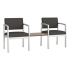 Enhance the comfort and style of your waiting room with these Lesro Lenox Steel guest arm chairs with a connecting corner table. The chairs are designed with a robust steel frame, making them perfect for high-traffic areas such as waiting rooms and reception areas. Their durable silver powder-coated finish ensures that they will withstand daily use and maintain their sleek appearance for years to come. Not only are they built to last, but they are also stain- and water-resistant, formaldehyde-free, and contain no heavy metals, antimicrobials, or flame retardants. The seats and backs feature a fiber content and backing of 35% cotton and 65% polyester for optimal comfort. Their grade 3 100% vinyl upholstery with a urethane topcoat adds a touch of elegance and sophistication to any space while their charcoal gray color easily blends into any decor. For added convenience and protection, the chairs have a PermaBlok finish that resists splitting, cracking, and a loss of flexibility while also inhibiting the growth of bacteria, mold, fungus, and mildew.
