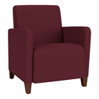 Lesro Ravenna Open House Wine Fabric Guest Arm Chair with Walnut Wood Legs