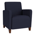 Upgrade the style and comfort of your lounge, reception area, or waiting room with the Lesro Ravenna guest arm chair. It features a heavy-duty construction that is perfect for high-traffic areas, ensuring long-lasting durability and performance. The solid walnut wood legs provide both sturdiness and an elegant touch to your space, while the nylon floor glides protect your floors from scratches and scuffs. The practical 4" tall legs make cleaning beneath the chair a breeze, maintaining a neat and tidy appearance effortlessly.
