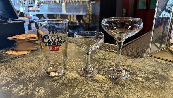 Great glasses. Canot go wrong with Libbey. I was lookin for 6oz slightly wider versions but alas couldn't find them. These are the smaller, perhaps more traditional, coupes. Again great for craft cocktails, not quite the wide mouth Great Gatsby vibe though. Provided a photo of the 5.5oz glass in between a standard pint and the larger coupe for reference.