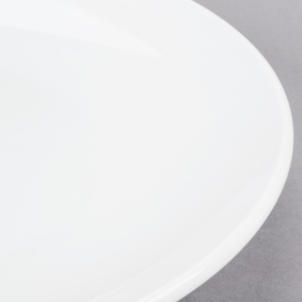 Combining a classic, round shape with an elegant, coupe rim, this plate is perfect for serving your signature entrees. Plus, its bright white color provides optimal contrast, allowing your colorful foods to seemingly pop off the table for an eye-catching appearance.