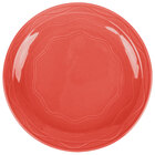 Enhance your dining experience with this Libbey 903034003 Cantina 7 1/4" cayenne round plate. This quality porcelain is built to last for years to come, and the bold, vivid cayenne color brings a fun and festive touch to table settings. It's perfect for your southwestern or Mexican-style offerings! In addition, the wavy, carved pattern on this plate frames your signature dishes in a decorative way for a memorable presentation.