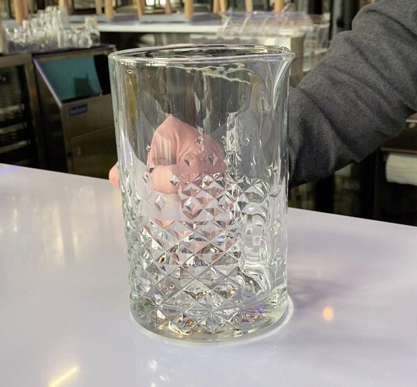 The bubble details on these cocktail glass make them very unique. We sent them out and had them laser etched with a logo. Very professional and stand up in the bar scene.