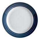 Designed with simplicity and versatility in mind, this Libbey 999025139 Banded Rigel Constellation 9" lunar bright white porcelain plate with apple butter stripes allows you to serve guests and residents with confidence! It combines a smooth, simple design with a traditional, round form, helping to bring a sophisticated yet modern touch to dining rooms. Its luminous, lunar bright white coloring boasts bold apple butter stripes for an eye-catching, professional appearance. Use it to create stunning, refined table settings in any establishment from casual or high end restaurants to healthcare facilities. Great for serving lunch entrees, this plate is a must-have addition to your dinnerware collection.