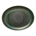 Create a dynamic table setting with this Heart & Soul Perfect Match 14 1/4" x 11" avocado porcelain oval coupe platter. Featuring a Mediterranean-inspired design and robust colorways, this platter will add a refined touch of elegance to your tables. It is coated in a twice-fired, natural reactive glaze that makes every piece unique. The dark green avocado colorway is reminiscent of ripe avocado skins, contrasted by silver pigments.