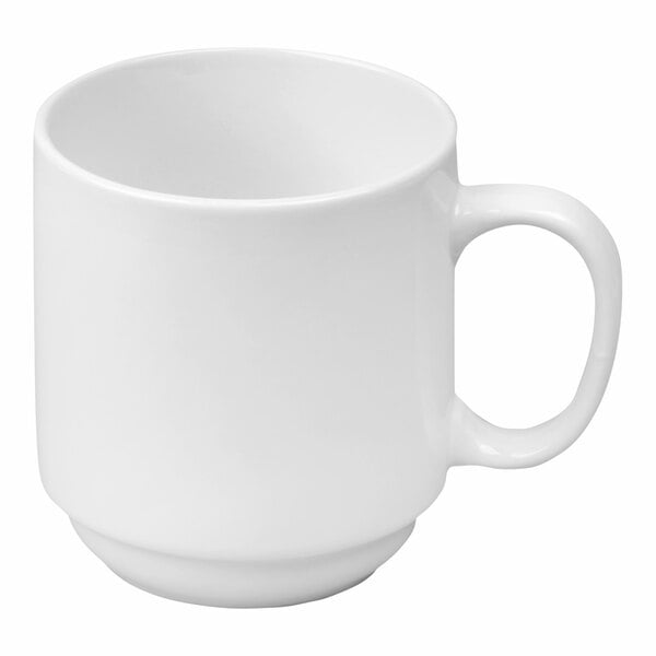 World Tableware BW-1114 Basics 11.5 oz. bright white porcelain stacking mug. Excellent for coffee houses that are serving breakfast items and this comes in a 36 case