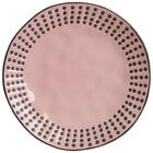 Add an intricate style to your dining room with this Libbey DULCET-2P Dulcet 8 5/8" pink stoneware salad plate that features a handmade design of dashes and dots. Thanks to its rounded shape and earthy tones, this salad plate adds visual interest to any dining area. With a polished foot, you can also rely on this to not scratch other dishes when stacked together. Use this plate to serve crisp salads and appetizers in style.