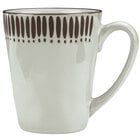 Add an intricate style to your dining room with this Libbey DULCET-6G Dulcet 13 oz. gray stoneware mug that features a handmade design of dashes and dots. Thanks to its rounded shape and earthy tones, this mug adds visual interest to any dining area. With a polished foot, you can also rely on this to not scratch other dishes when stacked together. Use this mug to serve piping hot teas and coffees.