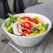 Made of durable porcelain, this bowl is fully vitrified to resist moisture absorption and is built to withstand the rigors of fast-paced environments. It will also help reduce replacement costs with less chipping and breakage than traditional ceramic or glass dinnerware. For added convenience, it's oven-safe up to 350 degrees Fahrenheit. Combining both style and strength, this piece is sure to enhance your customers' dining experience.