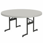 This Lifetime 80125 60" round putty professional-grade plastic folding table is a convenient and reliable addition to virtually any application. With an incredible combination of affordability and performance, this table is sure to be an integral component in your operation! Its durable, attractive design makes this folding table great for conference rooms, restaurants, banquet halls, and a variety of other establishments. It has a 2" thick top that will not crack, chip, or peel, and its rugged design makes it an excellent choice for both indoor and outdoor use.