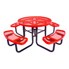 Enhance your seating area with the Lifeyard 46" round brown expanded metal picnic table. Crafted with a strong expanded metal construction, this picnic table is designed for durability and longevity, making it a reliable seating option for both indoor and outdoor settings. The light weight thermoplastic coating not only provides a modern and sleek appearance but also ensures resistance against impacts, rust, and chipping, maintaining the picnic table's aesthetic appeal over time. Enjoy a smooth and comfortable seating experience with the picnic table's ergonomic design, perfect for customers to relax, eat, and socialize.