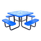 Enhance your seating area with the Lifeyard 46" square green perforated metal picnic table. Crafted with a heavy-duty metal construction, this picnic table is designed for durability and longevity, making it a reliable seating option for both indoor and outdoor settings. The thermoplastic coating not only provides a modern and sleek appearance but also ensures resistance against impacts, rust, and chipping, maintaining the picnic table's aesthetic appeal over time. Enjoy a smooth and comfortable seating experience with the picnic table's ergonomic design, perfect for customers to relax, eat, and socialize.