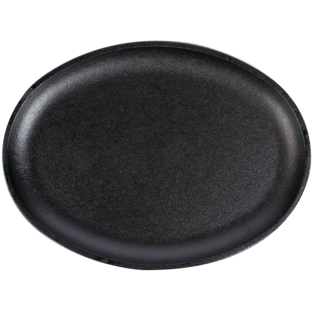 Bring a time-honored tradition to your foodservice kitchen with this Lodge LOSH3 10" x 7" cast iron oval fajita skillet! Perfect for serving fajitas and appetizers, this griddle lets you bring food out hot, sizzling, and fresh from the kitchen to your hungry customers. Fits Lodge underliner UOPB, UGOH, UOPB1, and USO11 (sold separately).