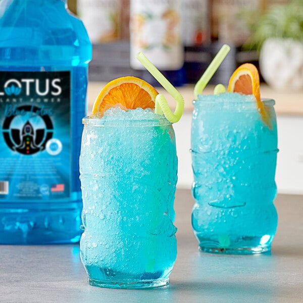 Lotus Blue is a super delicious blend of Açaí Berry, Blackberry, and Blueberry! We love how well they blend with our Monin syrups, and how they keep us current with younger people. They love the fun colors!