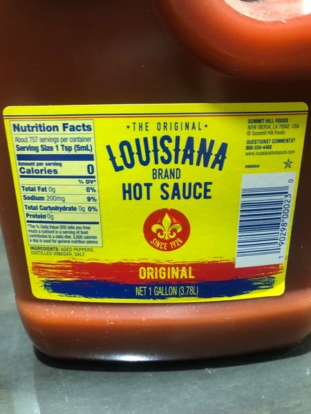 The Louisiana original hot sauce is smoking hot. Great for making our curry and really adds a nice heat to the mix. Love the large size.