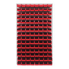 This louvered panel comes with 120 red hanging bins that are designed to withstand the rigors of commercial use and feature a highly durable polypropylene construction. For added durability, each bin is waterproof, and resistant to rust and corrosion. Plus, the front, side, and back grips make the bins easy to handle when attaching and detaching them from the panel. The bins are also made with large, molded-in front label slots for quick and easy identification. Be sure to pair this louvered panel with other sizes and bin colors (sold separately) to optimize your industrial storage space!