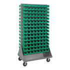 Quantum 36" x 25" x 72" Gray Steel Mobile Double-Sided Louvered Rack with (240) 7 3/8" x 4 1/8" x 3" Red Bins QMD-36H-220RD
