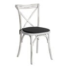 This chair boasts a contoured back and seat to provide comfort for your guests while maintaining a distinct, rustic apperance. It also features a cross back that's contoured to provide extra support to your customers' upper backs. The included cushion features a 1" thick polyurethane sponge interior to ensure that all guests are seated comfortably at any event.