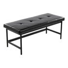 Elevate the ambiance of your indoor seating area with this LumiSource Fuji black faux leather bench with black metal frame! Ideal for lounges, lobbies, and reception areas, this bench comfortably seats two people, providing a stylish and comfortable indoor seating option. The slim metal frame finished in a sleek black color offers long-lasting strength and durability, making it optimal for high-use environments. The contemporary yet practical design offers excellent versatility, allowing you to create an intimate space or integrate this bench within a larger seating arrangement.
