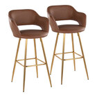 LumiSource Margarite Gold Metal Barstool with Brown Faux Leather Bucket Seat and Armrests - 2/Case
