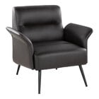 This stylish chair adds a contemporary touch to any setting with a luxurious look that effortlessly complements a variety of decor. The comfortable design features a thick padded foam seat and backrest with eye-catching flared armrests. The faux leather polyurethane upholstery in a classic light brown color mimics the look and feel of real leather, offering a plush seating experience. This chair is easy to assemble with no additional tools needed, allowing you to quickly update your seating area. Upgrade your indoor space and delight your guests with this sophisticated LumiSource accent chair.