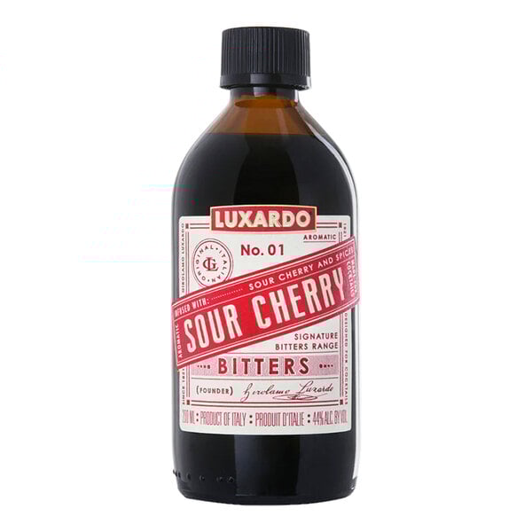 Add a new element to your bar or beverage service with these Luxardo sour cherry aromatic bitters! A popular ingredient in craft cocktails, bitters are a concentrated flavoring agent made from infusing spices, herbs, roots, or bark into a spirit. Bitters add an extra layer of flavor and aroma to craft cocktails and are especially useful for giving your signature drinks a dash of flavor that is difficult to achieve with other ingredients. These sour cherry bitters feature aromatic quassia bark and chocolate for perfectly balanced bitterness and sweetness. These bitters are infused with the rich flavor of Luxardo Marasca cherry juice, making it a great option for providing a hearty flavor to cocktails and other mixed drinks. Try it as a unique addition to a cherry spritz or as a finishing touch for a Manhattan!