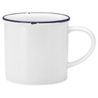 This stylish piece gives you the opportunity to enhance your dinnerware collection with superior quality craftsmanship. This durable, fully-vitrified porcelain piece is made of clay sourced from Dehua, a town in Southeast China's Fujian province famous for its historical production of ceramics. The clay is fired at high temperatures to produce a smooth translucent luster and colors that pop while ensuring durability for long-lasting use and fuss-free care and handling. The natural color variation and slightly distressed rim design of this piece provide one-of-a-kind authenticity and a storied backdrop for your signature offerings. Use this mug to serve your coffee, tea, or other hot beverages in style.