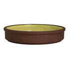 Deliver an unforgettable tabletop presentation with this Maham Studio Spice by Steelite International 6" round saffron stoneware stackable deep tray! Crafted from vitrified stoneware, this stackable deep tray combines the look of hand-thrown terracotta with the durability and reliability required in busy foodservice environments. The unglazed terracotta exterior adds artisanal charm, while the colored reactive glaze interior provides a unique, dynamic edge that elevates any tabletop setting. Plus, this stackable deep tray boasts a bright saffron yellow color speckled with organic white flecks and finished with a complementary brown exterior, creating a simple yet sophisticated display.