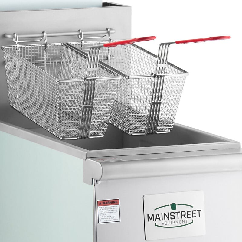 Two wire mesh fry baskets allow you to cook different products simultaneously, while the red coated handles ensure heat protection and operator comfort. This feature provides you with maximum flexibility so you can cook fries in one basket and mac and cheese bites in the other. Additionally, you could designate a particular basket for frying allergenic foods to avoid cross contamination.