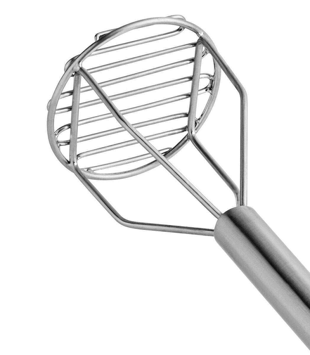 Its solid steel handle provides a comfortable grip, allowing you to effortlessly mash pounds of potatoes.
