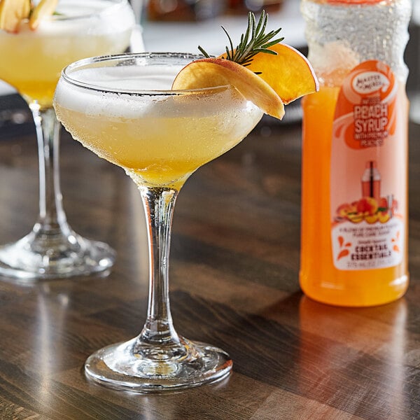 Made with a premium blend of pureed peaches, including Elegant, Summer, and Rich Lady peaches, and pure cane sugar, this syrup delivers an intensely fruity flavor of freshly-muddled peaches. Use it to handcraft specialty cocktails like margaritas, daiquiris, and mojitos, as well as to bring fresh, juicy flavor to lemonades and iced teas.