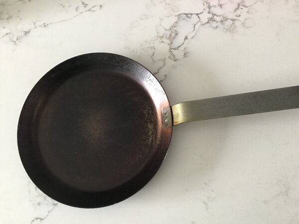 Amazing quality carbon steel pan from Matfer. The thick steel heats evenly and retains heat very well. Like all carbon steel, the pan must be seasoned and cared for appropriately, but the non-stick nature of seasoned carbon steel can not be beat. This pan is great for crepes, pancakes, fried eggs, or griddling toast or cheese sandwiches.