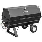 This roaster sports a cooking grate that is constructed with high-quality T304 stainless steel. This material is durable, food-grade, rust-resistant, and extremely easy to clean! The 58" x 24" grate and 58" x 22" second-tier grate add an impressive amount of cooking space. This unit also includes a stainless steel thermometer that is calibratable and built into the lid. It sports a 1" pipe burner and a gas safety valve with a pilot. The slanted drip pan allows grease to be drained to the outside of the unit using a drip tube. The body of the grill is made with 13-gauge welded steel that sports a matte black finish that is sleek and heat-resistant. A versatile unit, this roaster has two 13" tires that give it great mobility. This roaster is perfect for commercial catering applications!