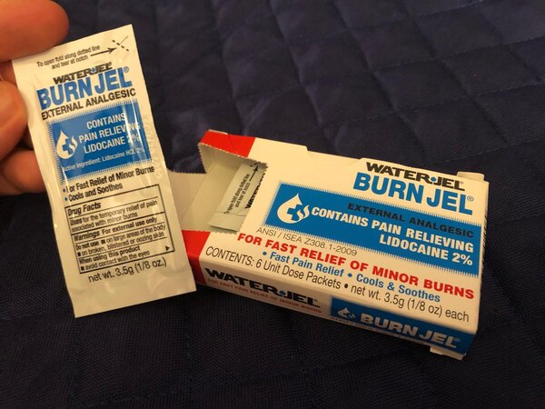 This burn gel contains lidocaine, a very fast-acting topical pain reliever. The individual packets are perfect for keeping in a knife roll so it's always there when you need it. Great product, and as always, great service and fast shipping from Webstaurantstore.