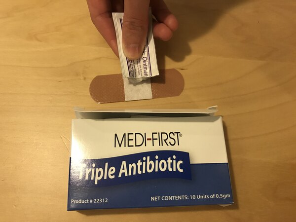 Small packets of antibiotic cream. Just the right amount per packet highly rated for convenience and recommended to add any first aid kit.