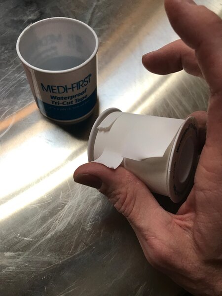 Medi-First Tri-Cut Adhesive Tape 5 Yards/Roll this tape is perfect for custom bandages. We got a roll to add to our large first aid kit. Great price.