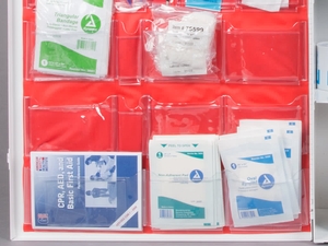 We purchased this first aid kit cabinet three shelf for our restaurant and are very pleased. It hopefully won't have to be used, but it is a quality kit and I highly recommend having on hand.