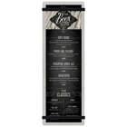 This menu holder's slim design makes it ideal for areas where space is limited both on the table and at your wait stations. At the same time, the durable aluminum design ensures longevity in a commercial setting, while the flexible straps are designed for repeated use. This menu holder holds a 4 1/4" x 14" insert and is a multi-purpose addition to modern cafes, bistros, breweries, and tasting rooms.