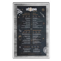 Suited for constant use, this menu board features attractive silver-colored edges to add some color to any tabletop decor. It protects your printed menu pages against spills and messes and allows you to swap out papers as needed to keep your menu up-to-date. It's a great solution for showcasing daily specials, happy hour deals, or entire lunch and dinner menus!