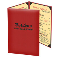 Protect and display your menus in style with this Menu Solutions K030BD Kensington 4 1/4" x 14" customizable 3 view continuous menu cover. The continuous triple panel accommodates (3) 4 1/4" x 14" inserts to showcase your signature dishes, happy hour specials, wine list, or dessert menu. Thanks to its rigid construction, this menu cover is easy to carry and distribute to customers. It also features interior picture corners and a durable, bookbinder's material for long-lasting use.